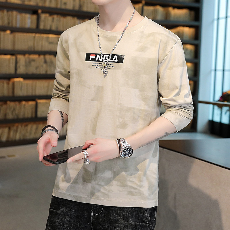 Camouflage long-sleeved T-shirt men's thin section autumn trend handsome top cotton men's autumn clothes one-piece outer wear bottoming shirt