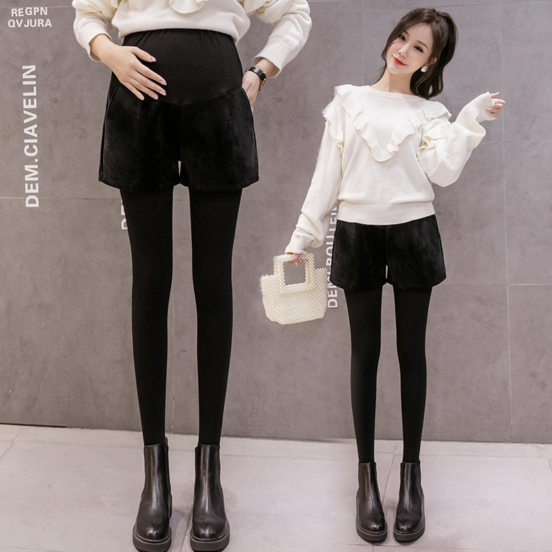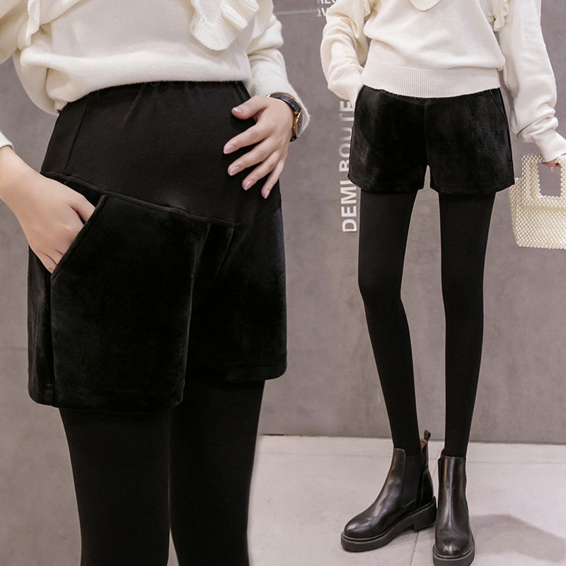 Pregnant women's shorts autumn and winter wear pregnant women's inner pants golden velvet belly boots pants autumn fashion tide mom wide leg pants