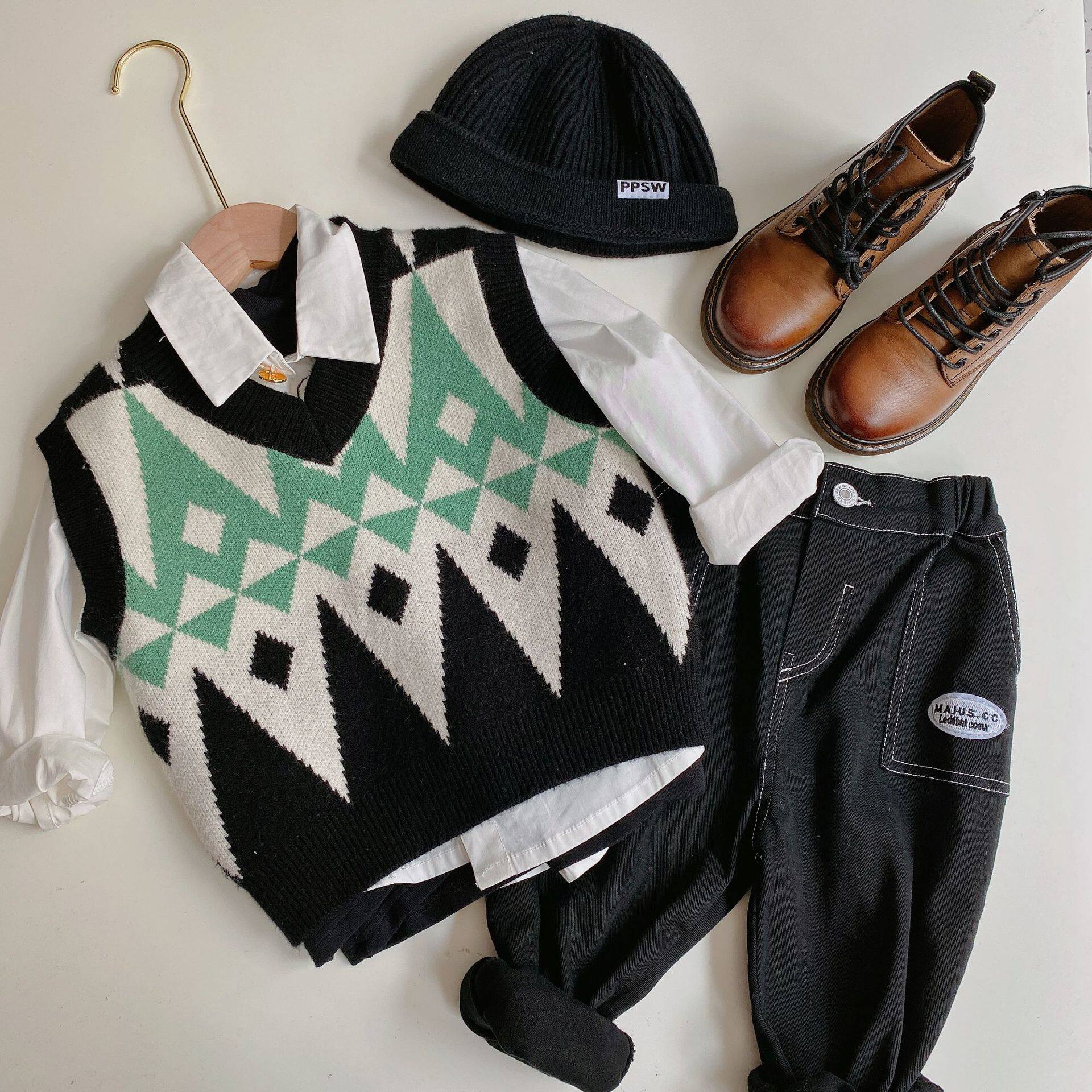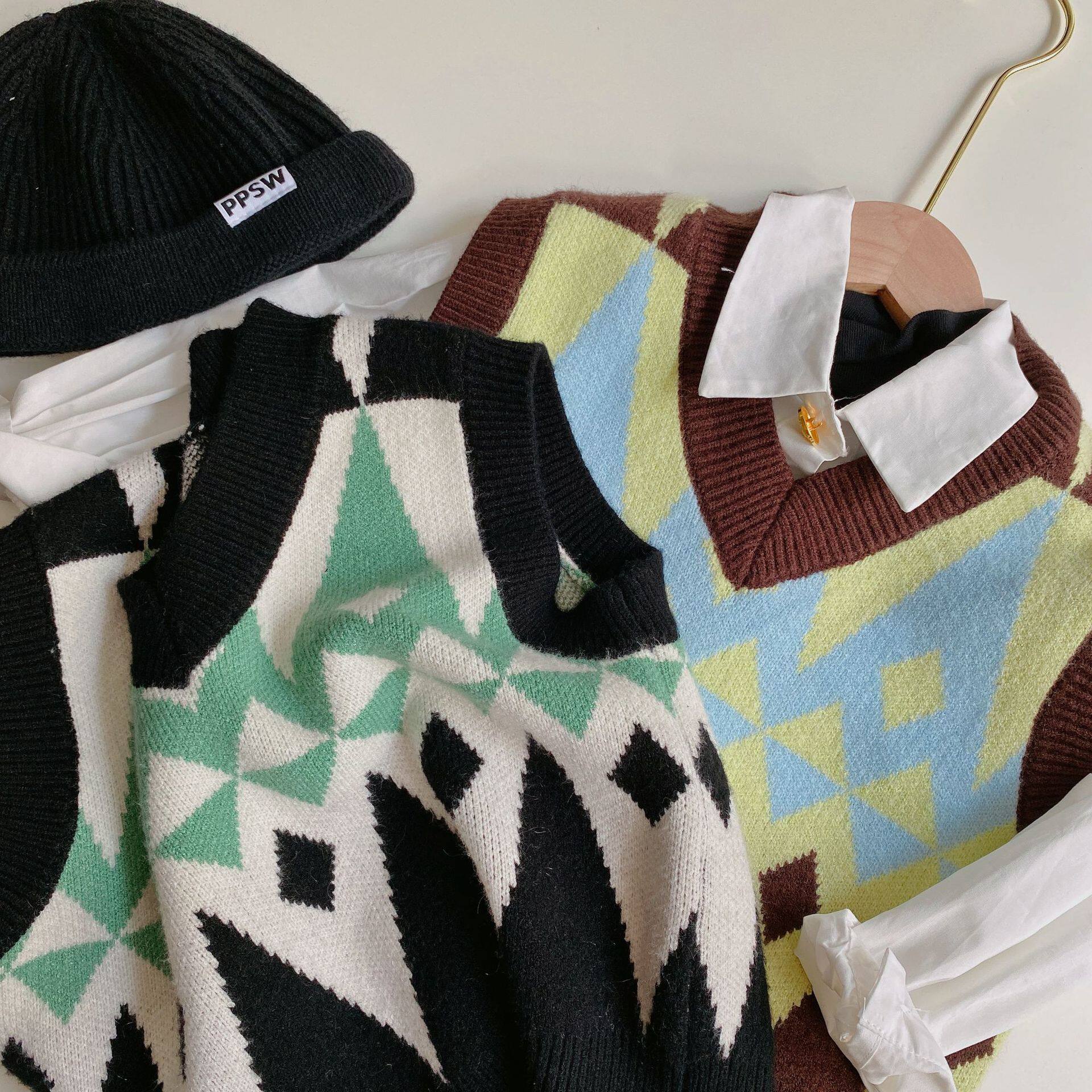 Chen Mom Children's Sweater Mark 2020 new Fashion Boy and Girl Edition of diamond V - collar knitting tide