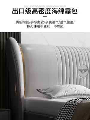 Italian leather art bed modern simple wedding bed master bedroom light luxury bed small apartment high-end soft bed Nordic white minimalist bed