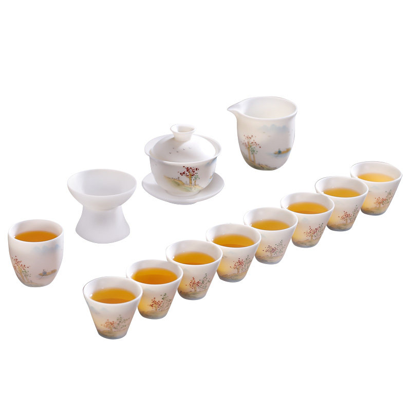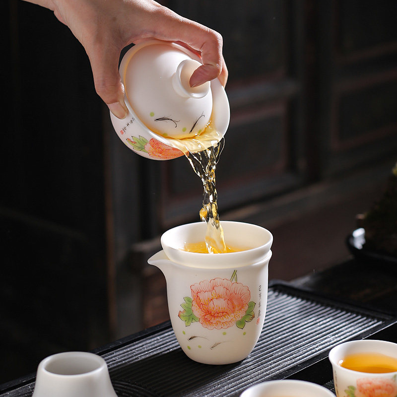 Artificial Kung Fu Tea Set Set of Artisan Cutting Bowl for Dechemical White Porcelain Simple Modern Living Room Tea Art Cover Bowl