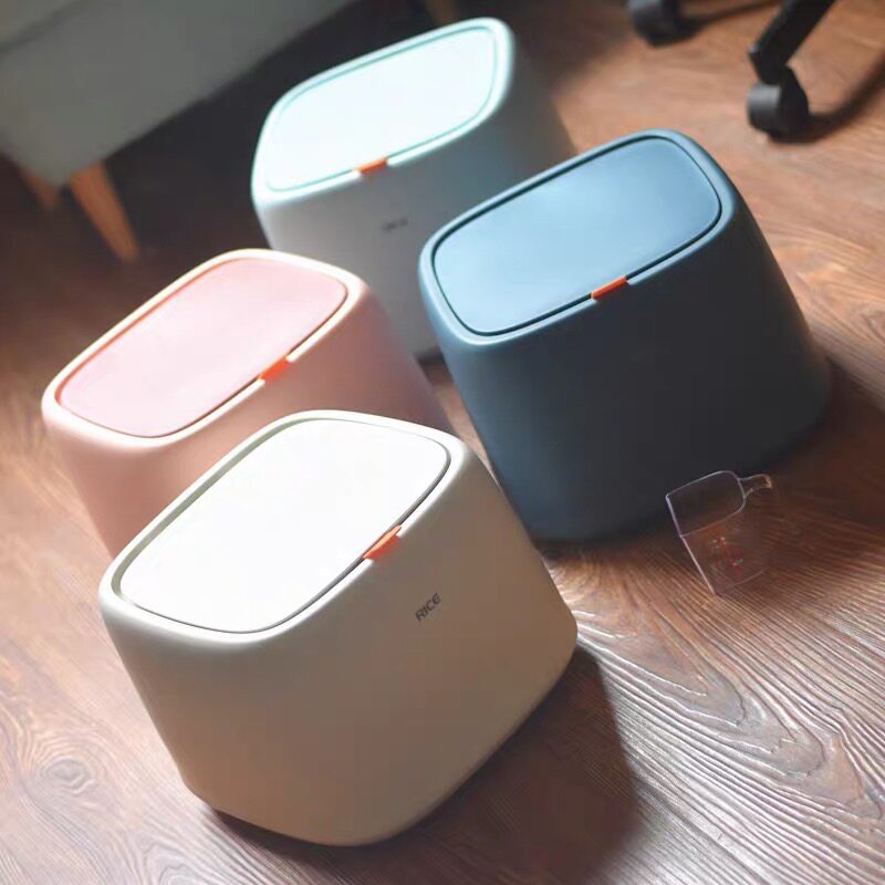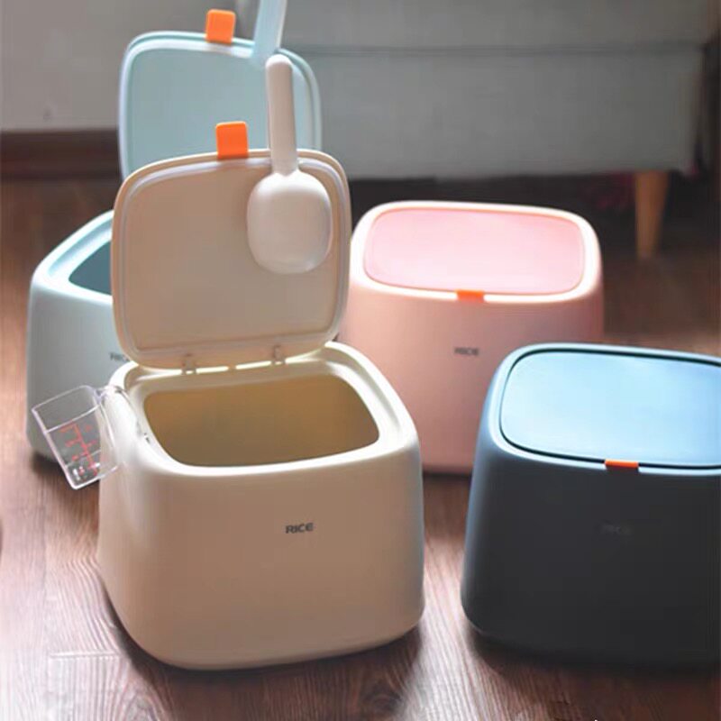 Dark blue grain storage barrel light blue grain storage barrel pink grain storage barrel white grain storage barrel dark blue powder blue spoon light blue blue white spoon pink powder coffee spoon white gray white spoon