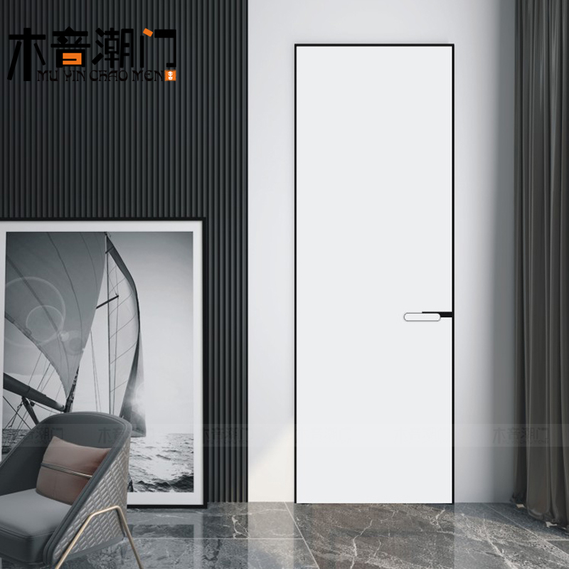 Borderless aluminum wooden door minimalist door frameless door bedroom white narrow edge hidden frame wooden door invisible door extremely narrow interior door