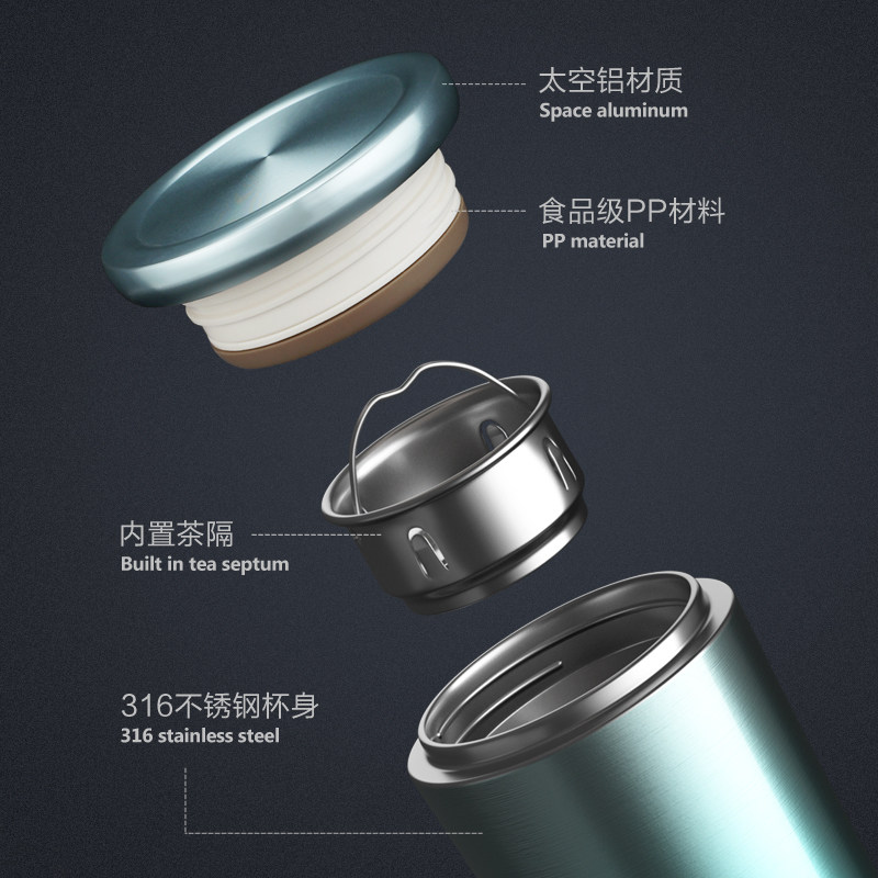 High-value insulation water cup female exquisite 316 stainless steel large capacity simple portable men's high-grade tea cup