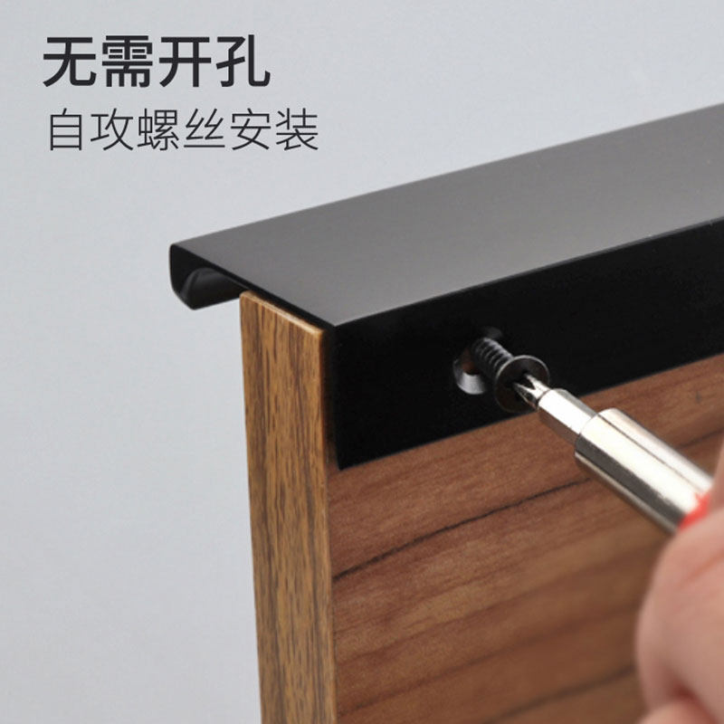 Invisible pull handle long black cabinet door free of punching concealed style Nordic modern minimalist wardrobe whole cupboard drawer door handle