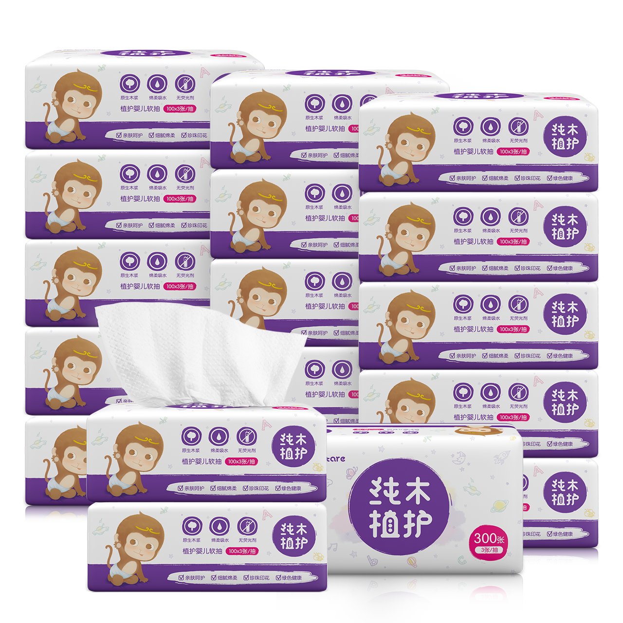 Plant protection wood baby removable toilet paper Large bag 18 bags full box household facial tissue toilet paper towel Baby special removable toilet paper