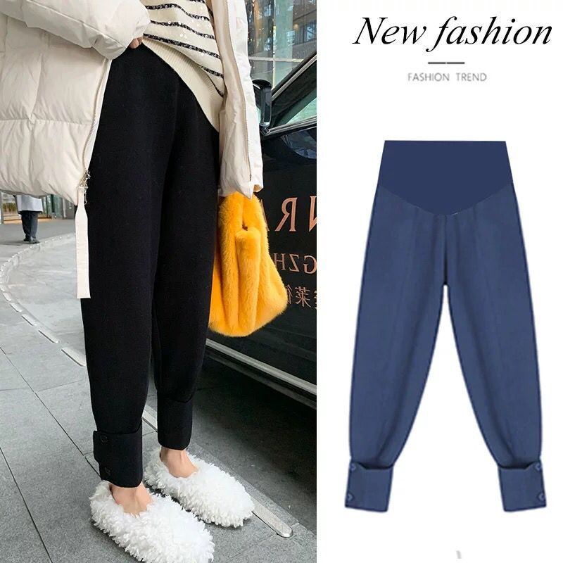 Pregnant women knitted beam pants 2020 Fall and Winter High - end red grandma relaxed tide mom casual Harlen pants winter dress