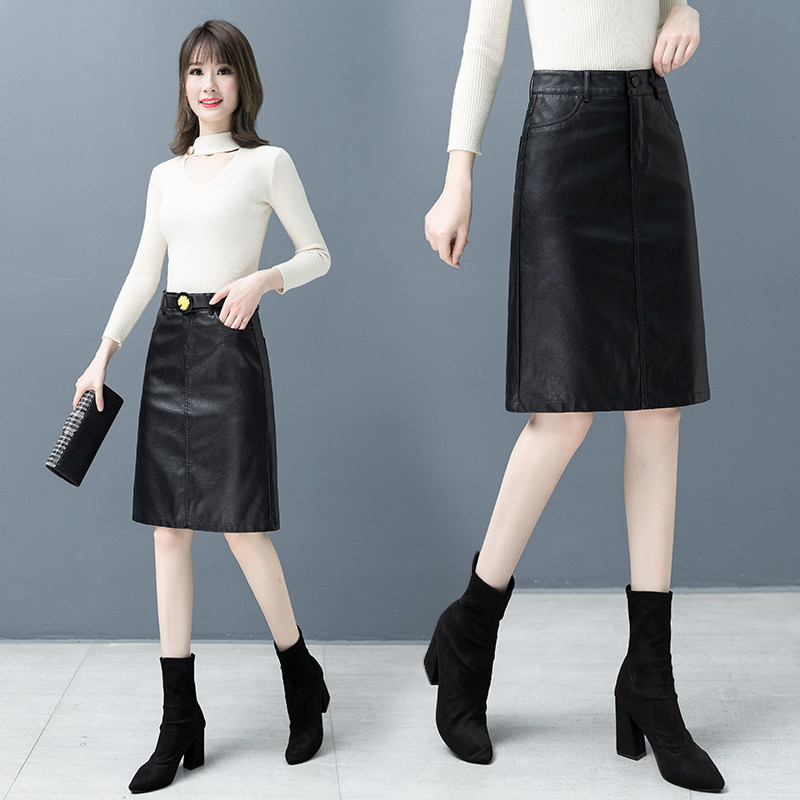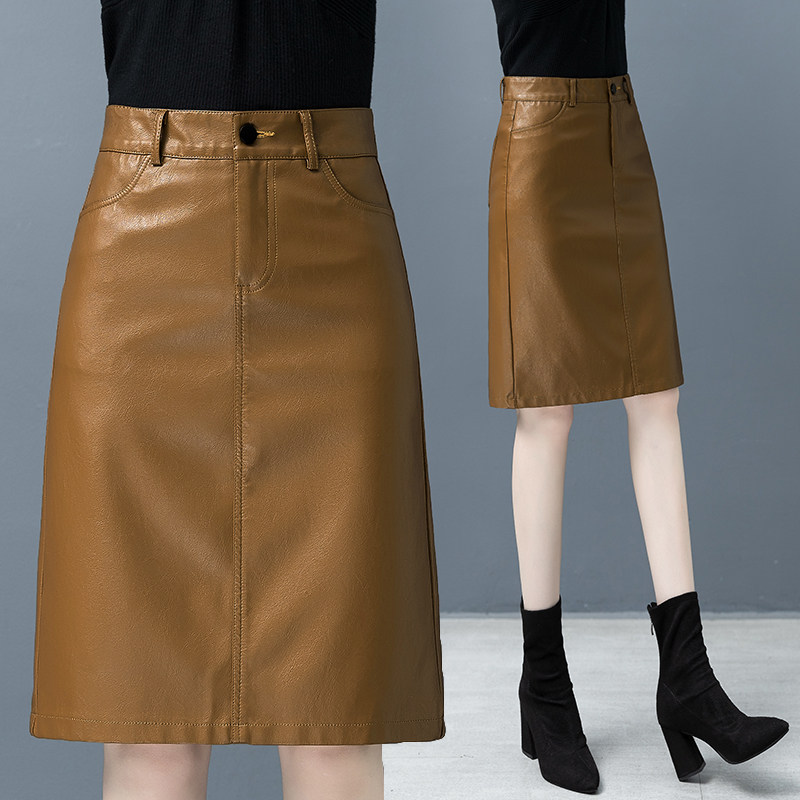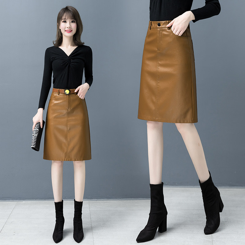 pu Little skirt Skirts 2022 Spring and Autumn New style high waist one - step long bag - hip skirt
