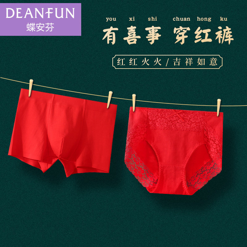 Butterfly Anfen red underwear underwear couple married a pair of men and women groom bride newly married men's a pair of pure cotton