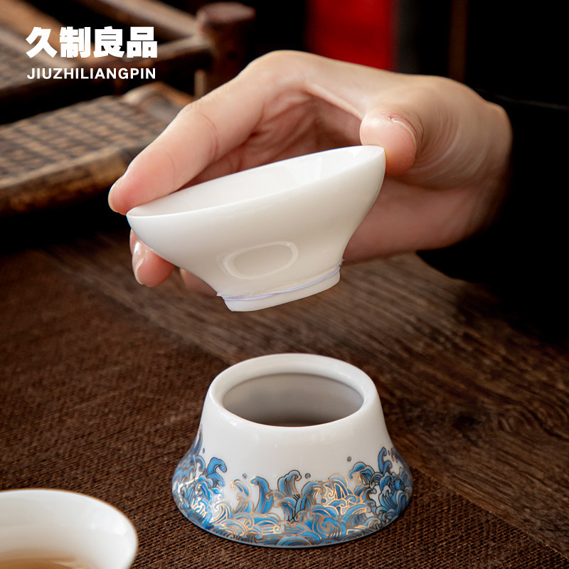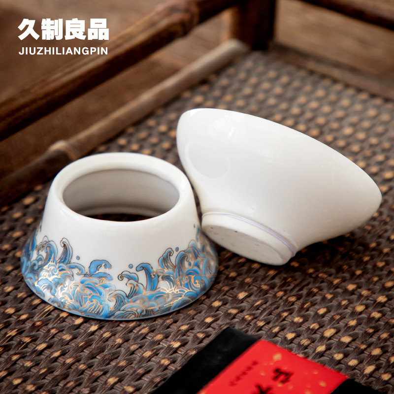 Long-made Good Shepherd Grease Jade Porcelain Tea Leak Filter Tea Ware Net Tea Seppe White Porcelain Enamel Color Home Tea Barrier Country Tide Wind