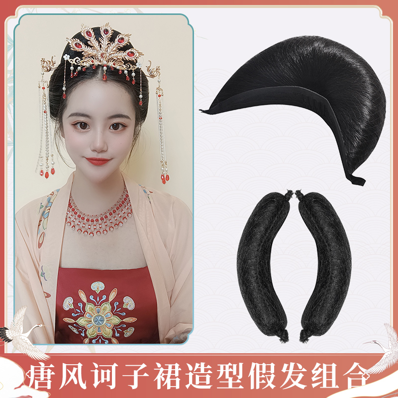 Video same wig combination Round horn 13 cm pair Crescent horn bun bag 16 cm Heartless Tang Style Match One Heartless Tang Wind Match Two Provincial Heart Tang Wind Match Three Provincial Heart Tang Style Match Four