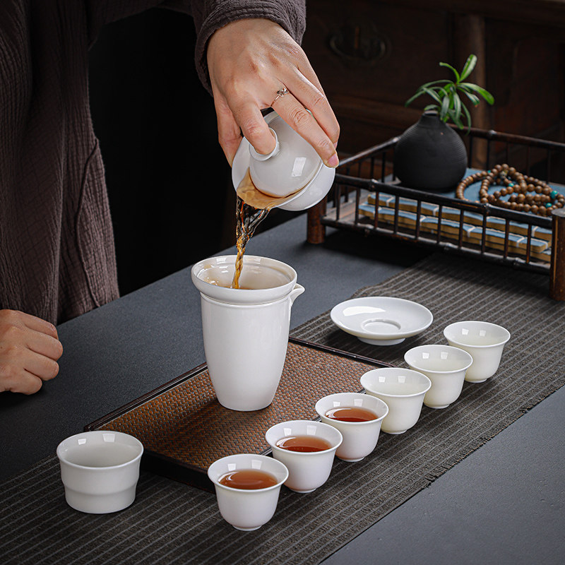 Yellow Home Desolated Jade Porcelain Tea Set Group Cover Bowl Pure Color White Jade Kung Fu Gift Whole Set Gift Box Custom Logo