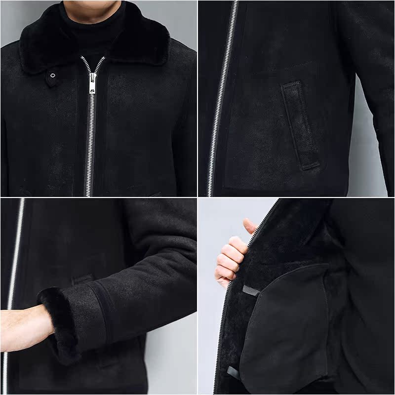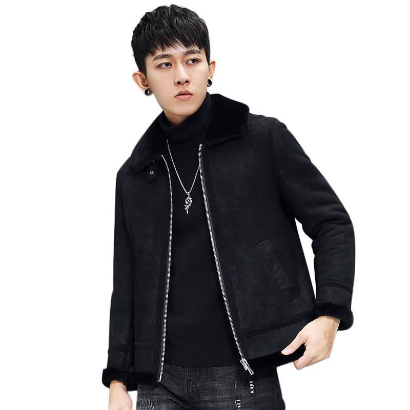 Off-code original ecological fur one-piece men's short slim lapel Haining leather leather winter motorcycle jacket jacket