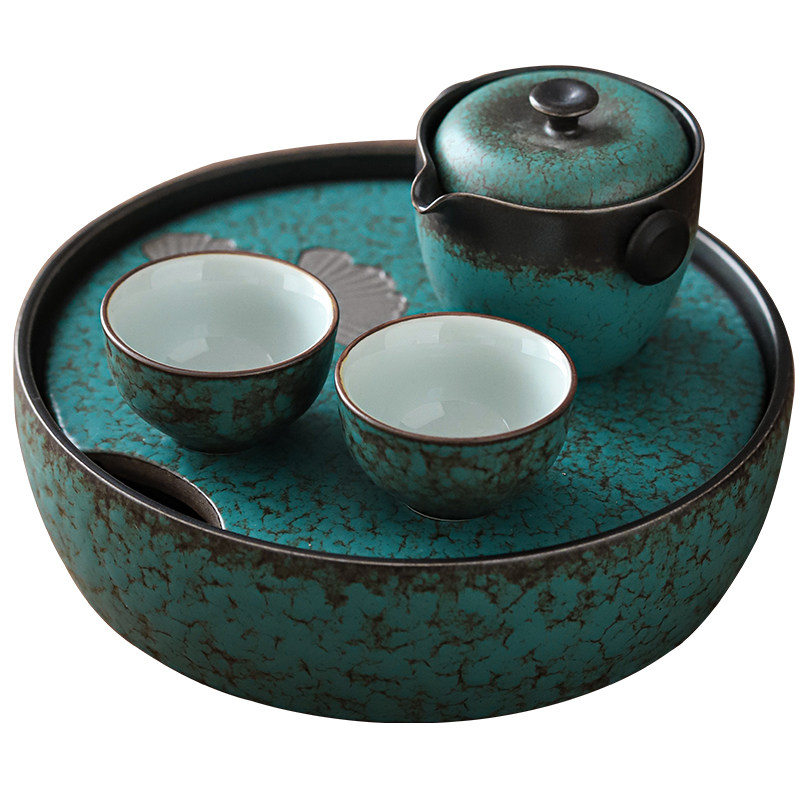 Kiln ceramic tea set two cups of household office Japanese kung fu tea set handcup cup tea set cup tea