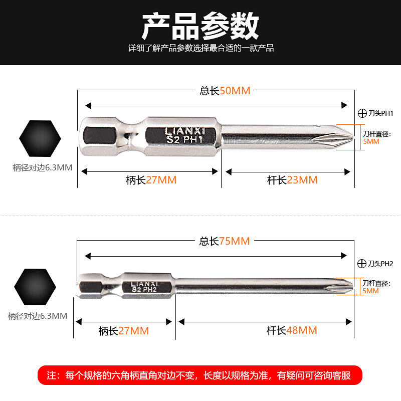 Taiwan S2 1 4 stiff cross nozzle electric screwdriver wind batch head with magnetic single head 50 75MM