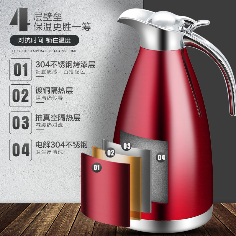 Thermos pot home 304 stainless steel large capacity 2L thermal kettle dormitory thermos bottle restaurant hotel warm kettle