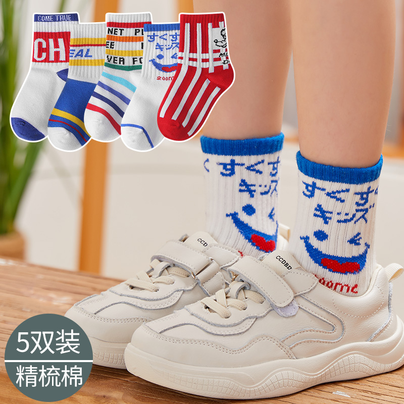 Children Socks Pure Cotton Spring Autumn Spring Summer Thin boy girl's middle cylinder socks South Korean Chaodins Ins baby cotton socks