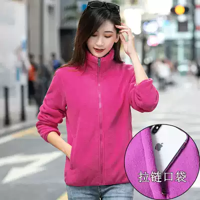 Outdoor autumn and winter fleece clothes women's plus velvet thickened fleece warm jacket cardigan coral velvet jacket liner
