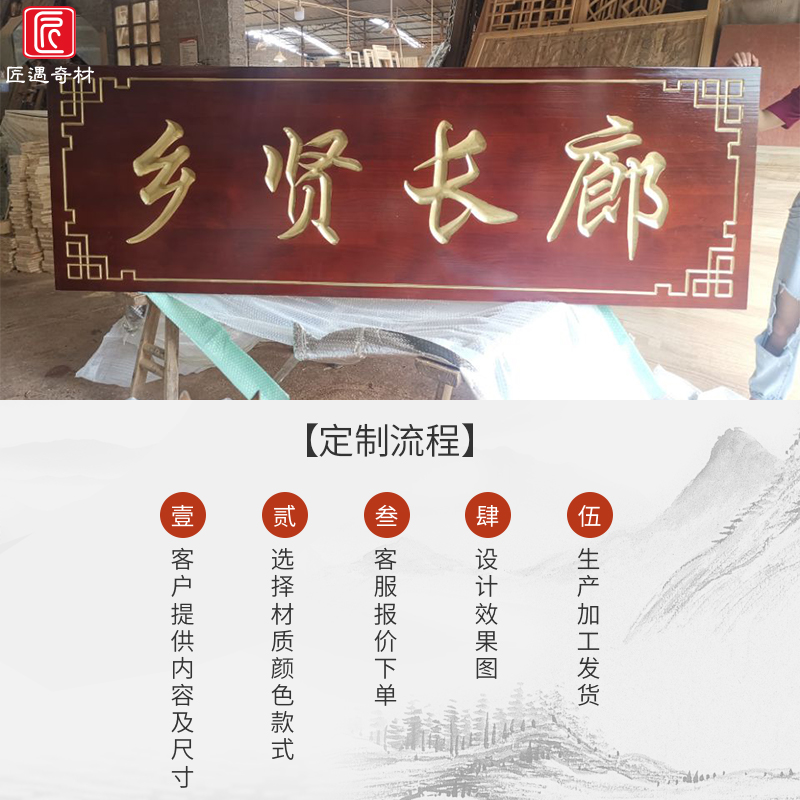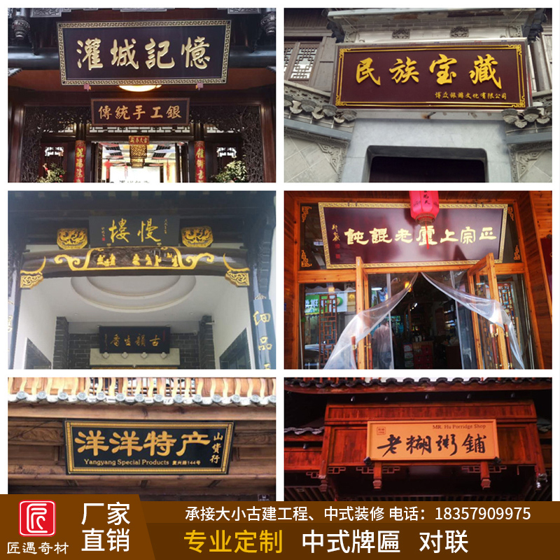 Dongyang wood carving solid wood plaque set as door head shop wood opening a congratulatory plaque antique couplet design Chinese style
