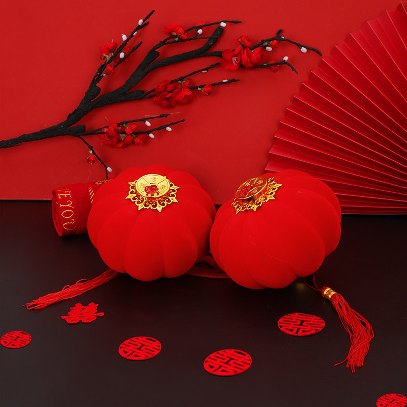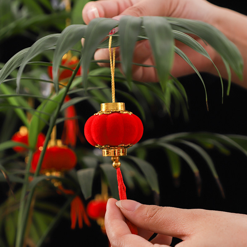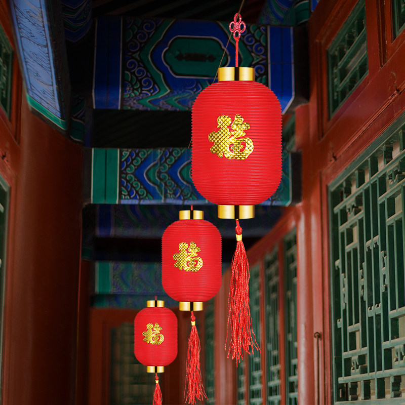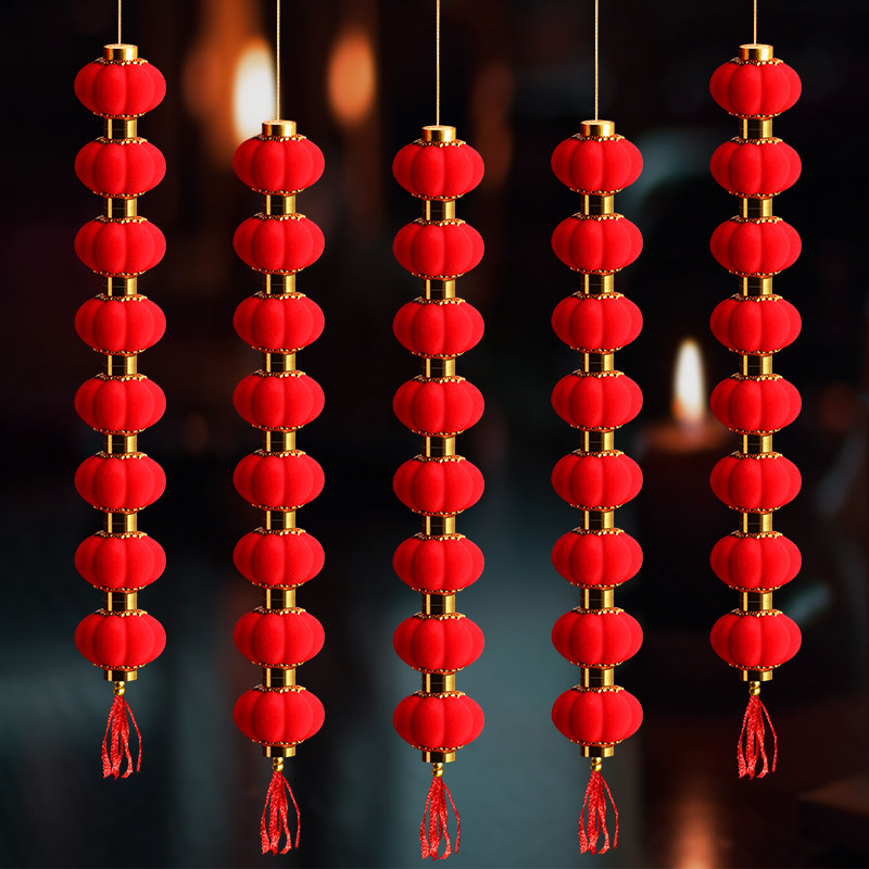 Celebration Flocking Mid Autumn Wedding small lantern hanging lamp hanging decoration large red outdoor indoor tree outdoor decoration waterproof and festive character-Taobao