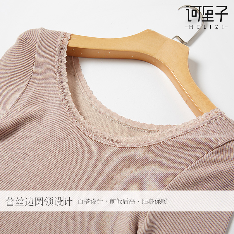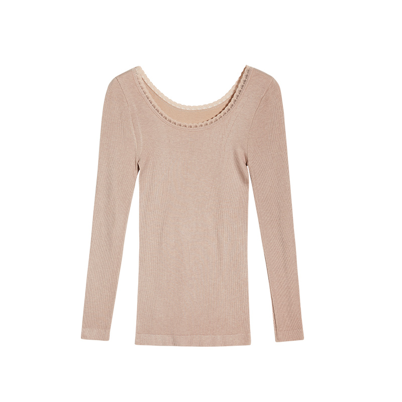 Lace Sexy Big Round Collar Warm Autumn Clothing Knitted Elastic Seamless Thin and thin T-shirt Long sleeve blouse lady autumn lady