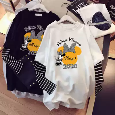 Long-sleeved T-shirt women's spring and autumn Korean version loose all-match long-sleeved top autumn pure cotton fashion fake two-piece tide