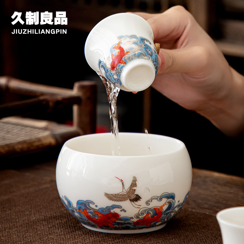 Long system of Liangyu Damp Wind Goat Grease Jade Porcelain Tea Wash Home Utilitarian Tea With Cup Wash Water Spittoon Wash Tea Bowl White Porcelain Pen Wash