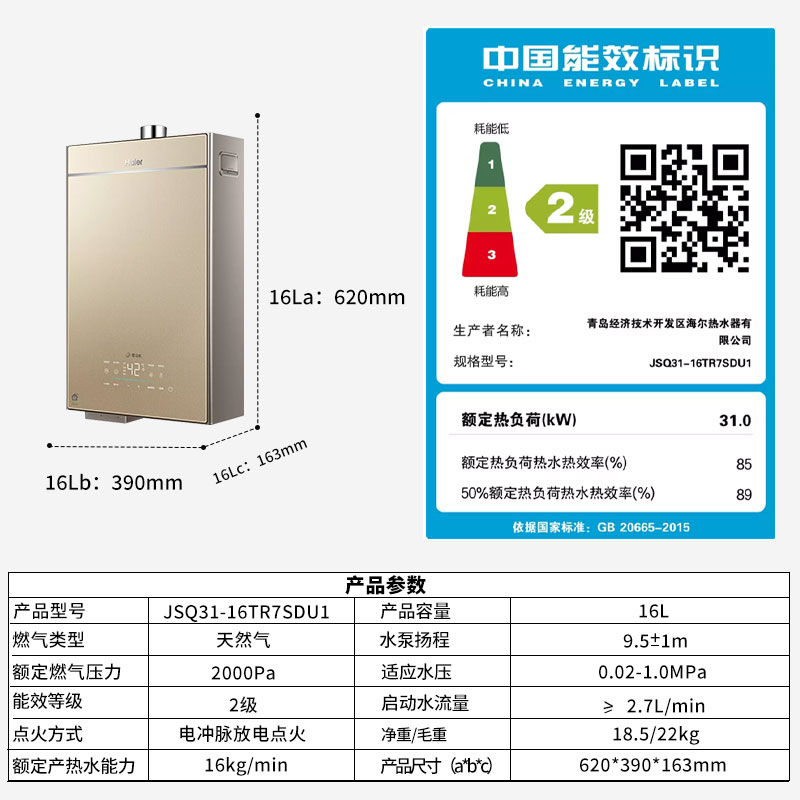 (0 Yuan installed) Haier Haier JSQ31-16TR7SDU1 gas water heater 16 litres of pressurized zero cold water