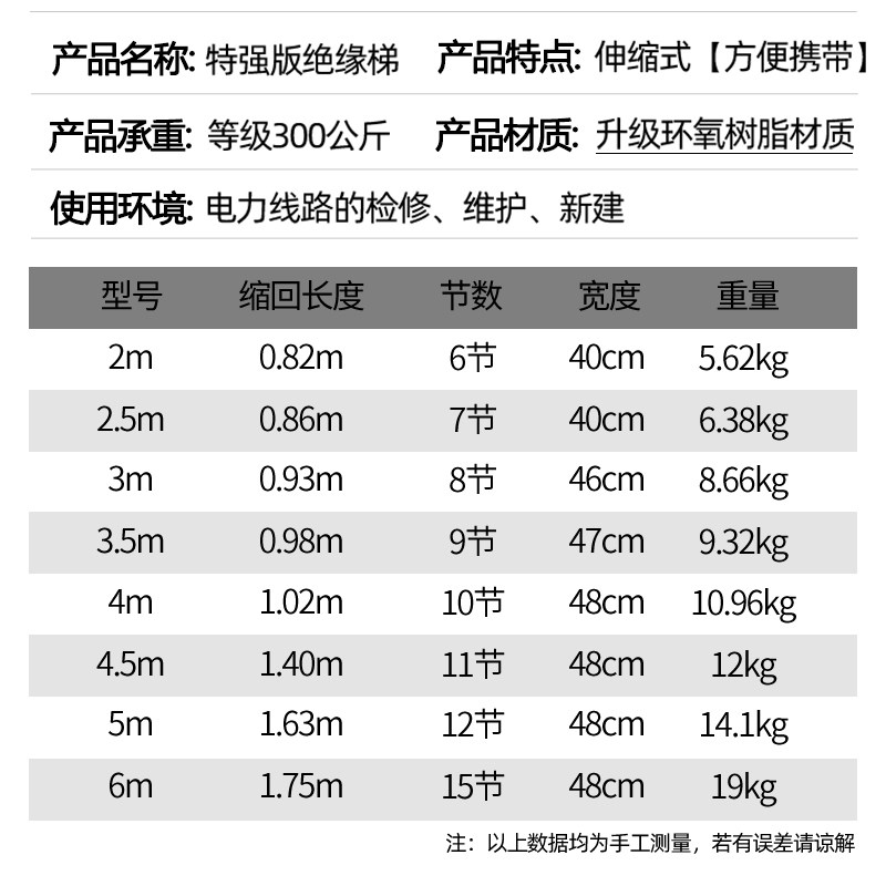 Insulated ladder electrician ladder telescopic ladder Insulated fishing rod ladder herringbone ladder joint ladder FRP electric single ladder straight ladder