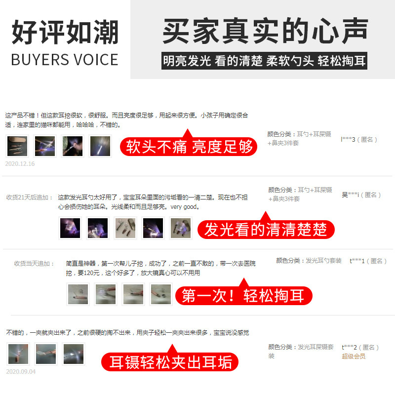 Luminous digging ear artifact children's ear digging spoon set baby baby earwax buckle soft head safety