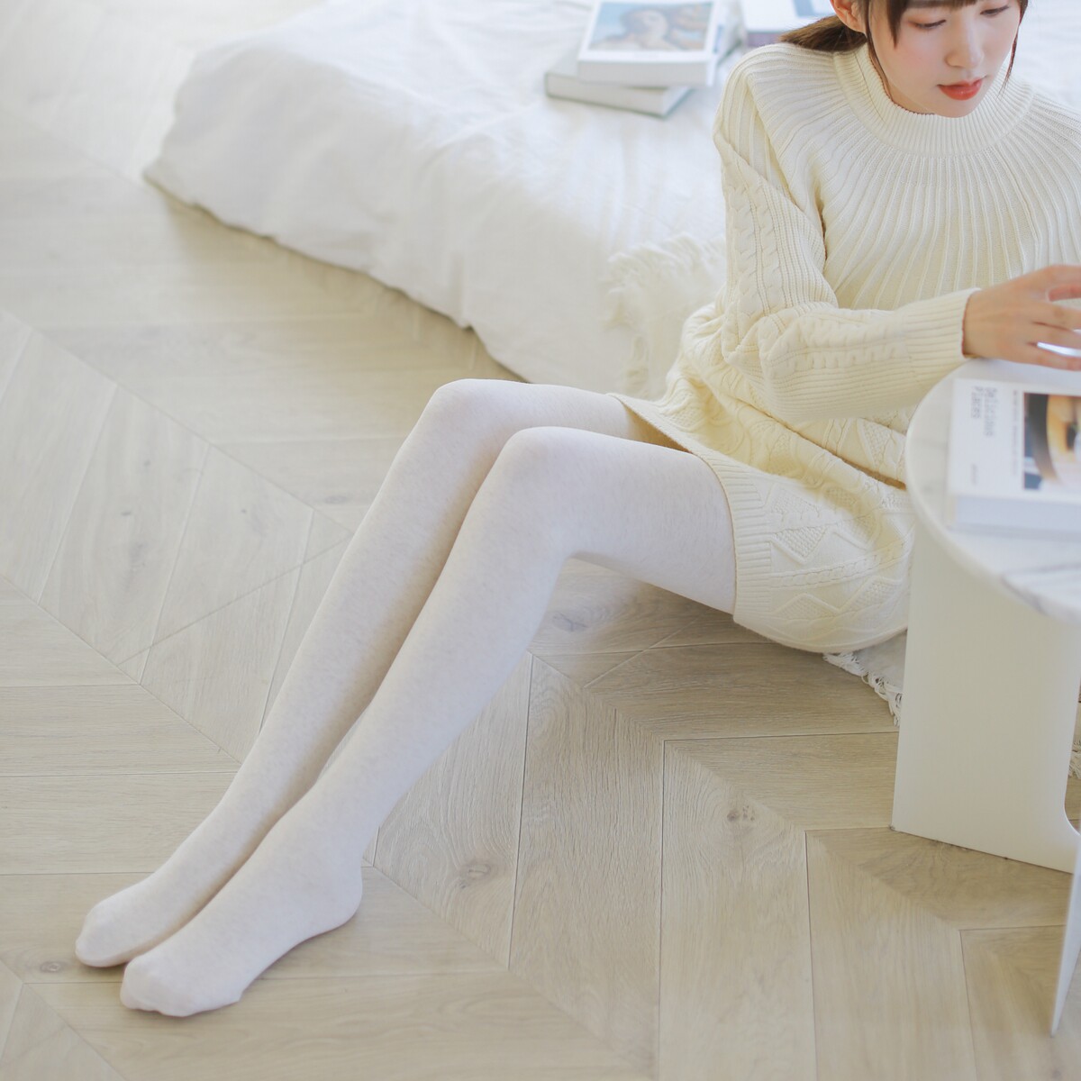 Mitu oatmeal light-colored pantyhose Japanese milk tea rice white spring and autumn mid-thickness winter thickening and velvet bottoming female