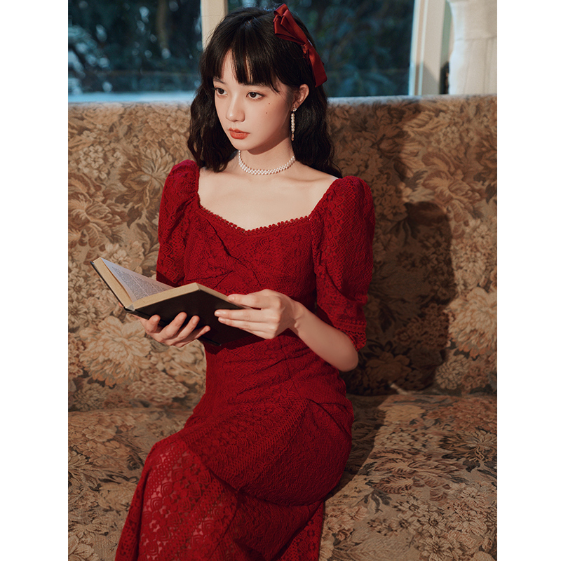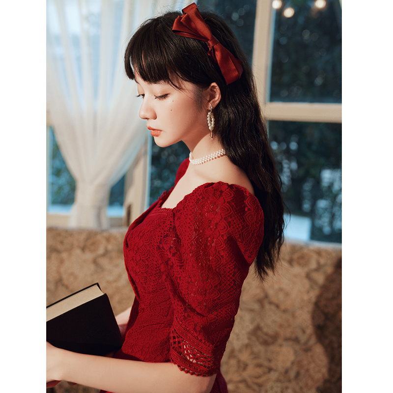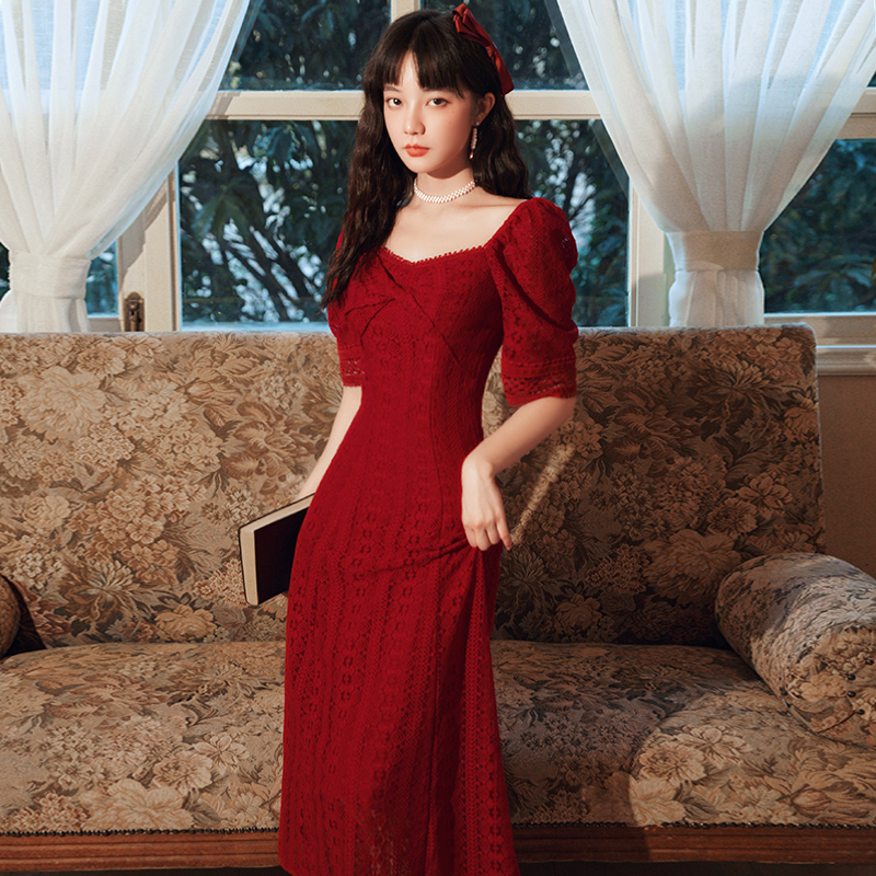 Red toast The bride can normally wear the summer lace 2021 new wedding gown temperament little Subtrothed