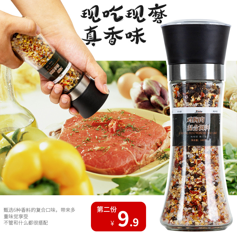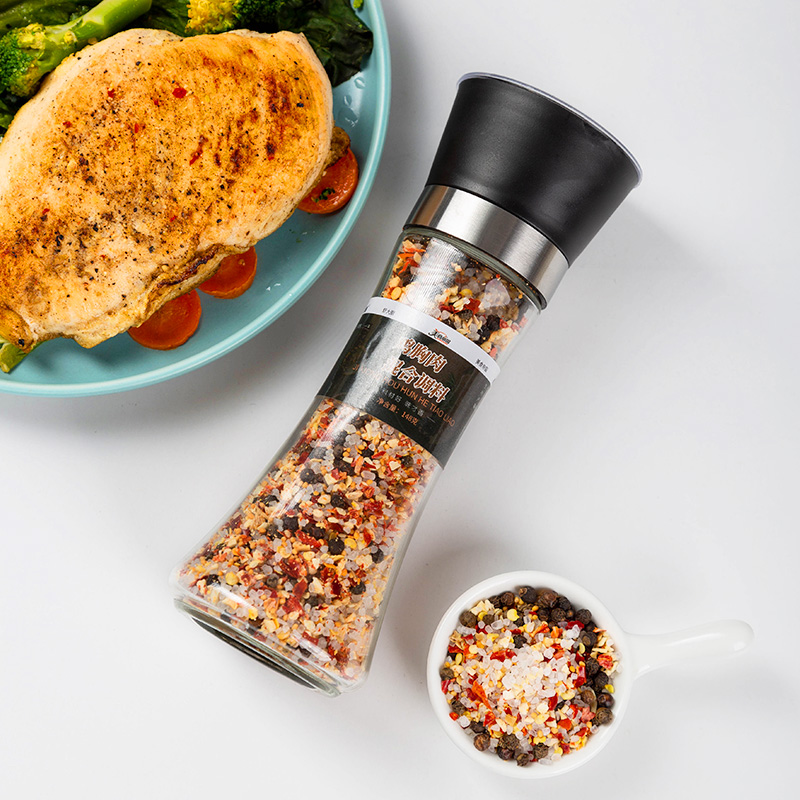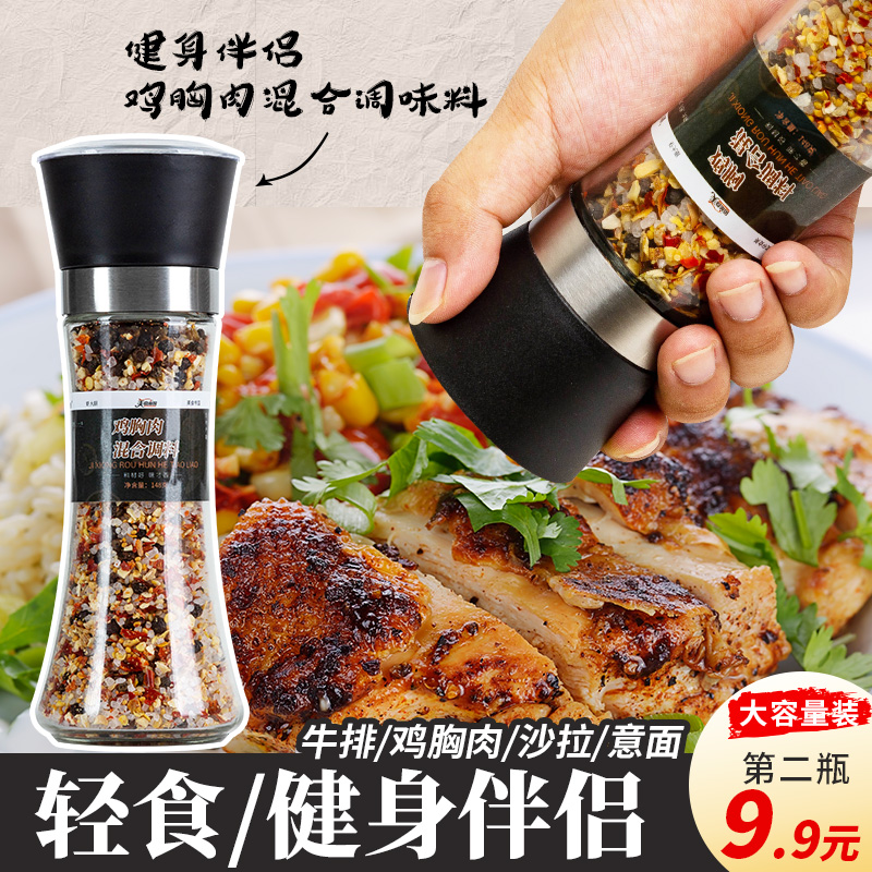 ㊙️ Sea salt black pepper with grinder chicken breast mixed seasoning steak toppings fitness meal seasoning powder grains