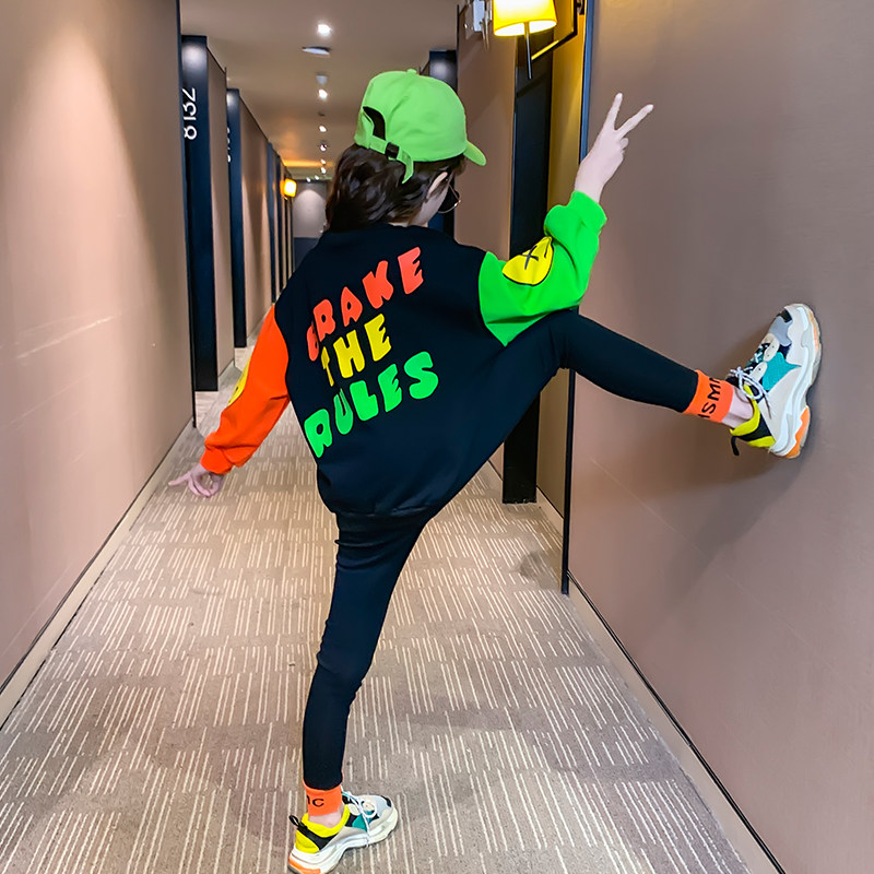 Boomer Girl Suits 2022 Spring Dress New Foreign GentChildren Korean version thick cotton T Child loose splicing Two sets