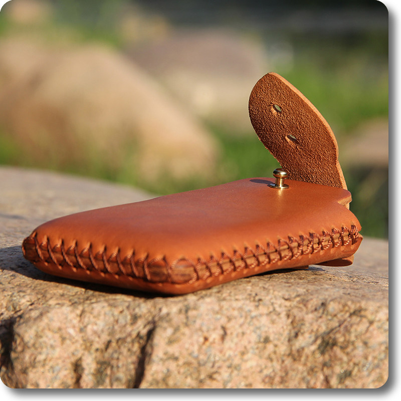 Cowhide mobile phone bag pure hand-sewn head layer vegetable tanned leather stereotypes fanny pack personality vintage hard leather compression wear belt