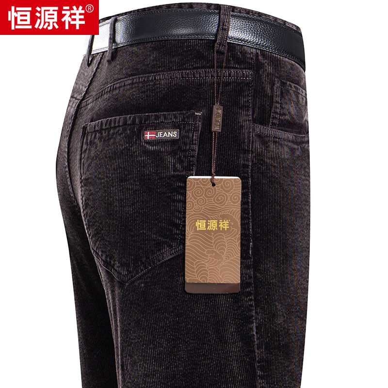 Hengyuanxiang Autumn New Casual Pants Men's Middle-aged Business Loose Straight Pants Dad's Corduroy Pants Trend