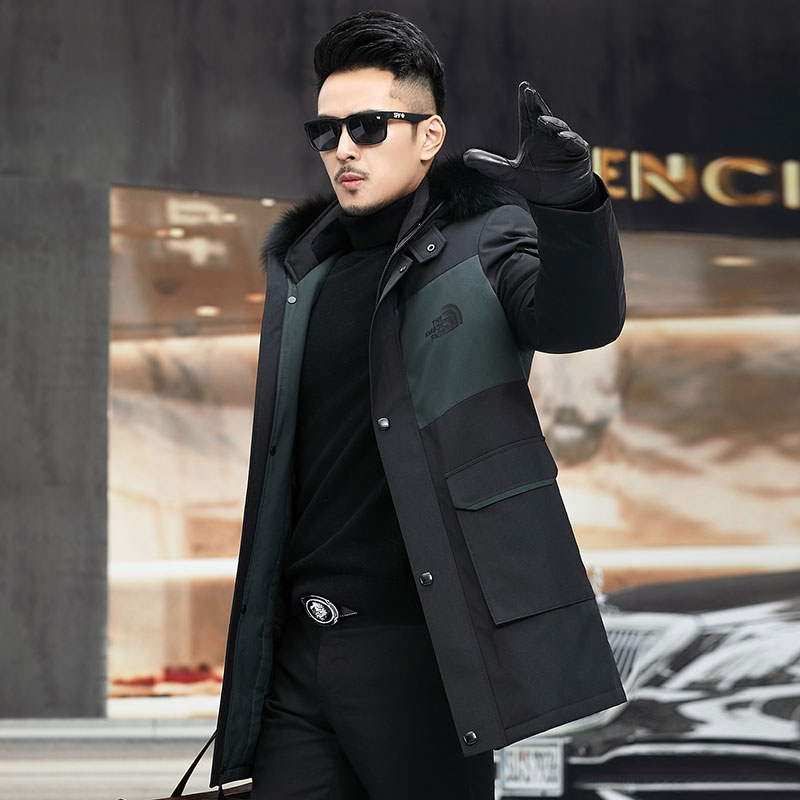 The whole mink liner faction overcomes the men's mid-long version of the great coat fox fur collar even hat Hainen genuine leather grass jacket new