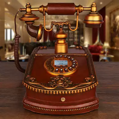 American classical antique telephone old retro creative leather pattern fixed office telephone landline wireless card