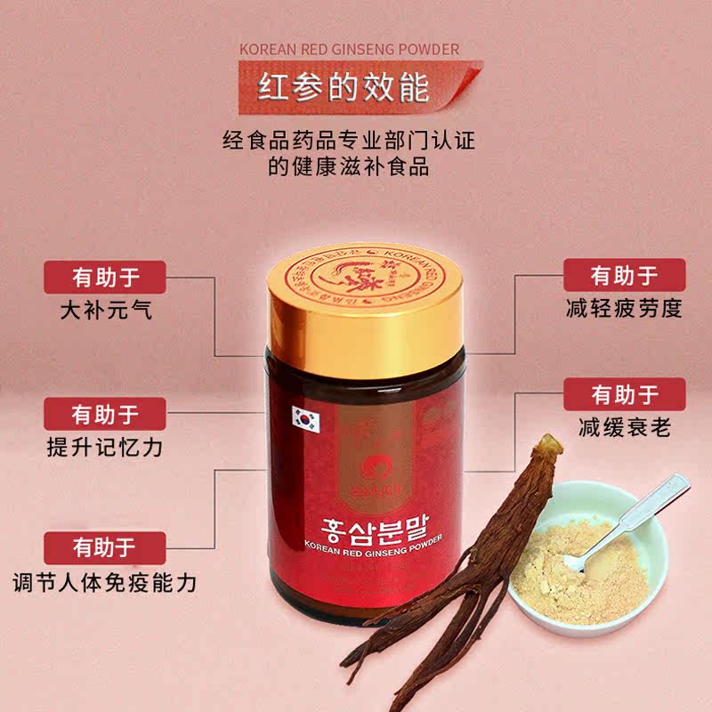 Korean Ginseng Era Red Ginseng Powder 120g Korean Ginseng Whole Ginseng Fatigue Memory Immunity Glucoside