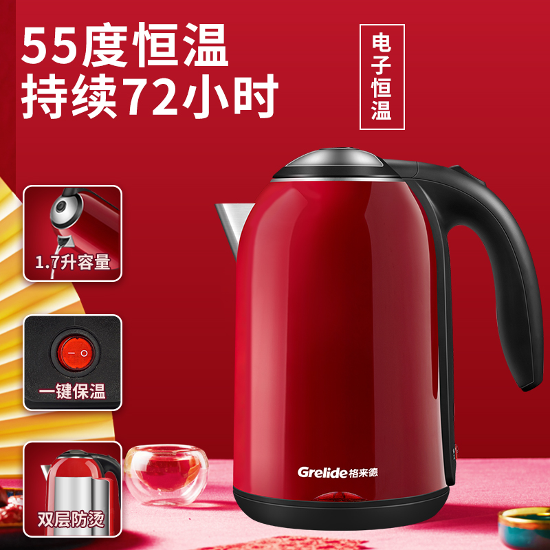 Grid 1701K insulation 55 degree thermostat 1 7L double layer anti - hot 304 stainless steel large capacity electric kettle