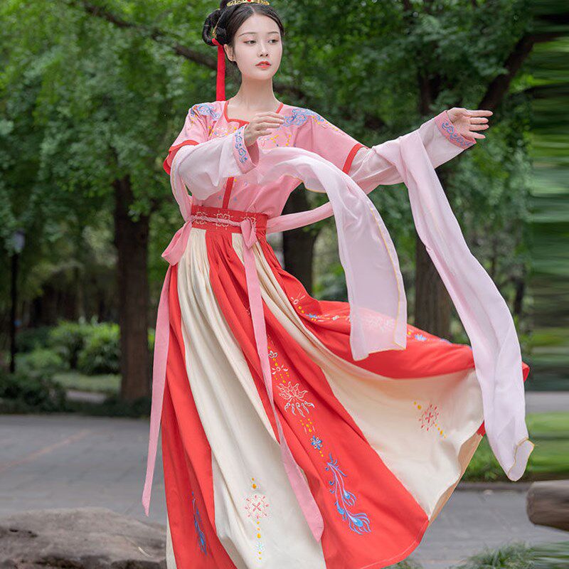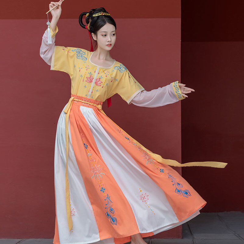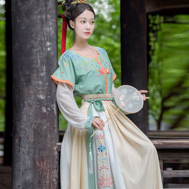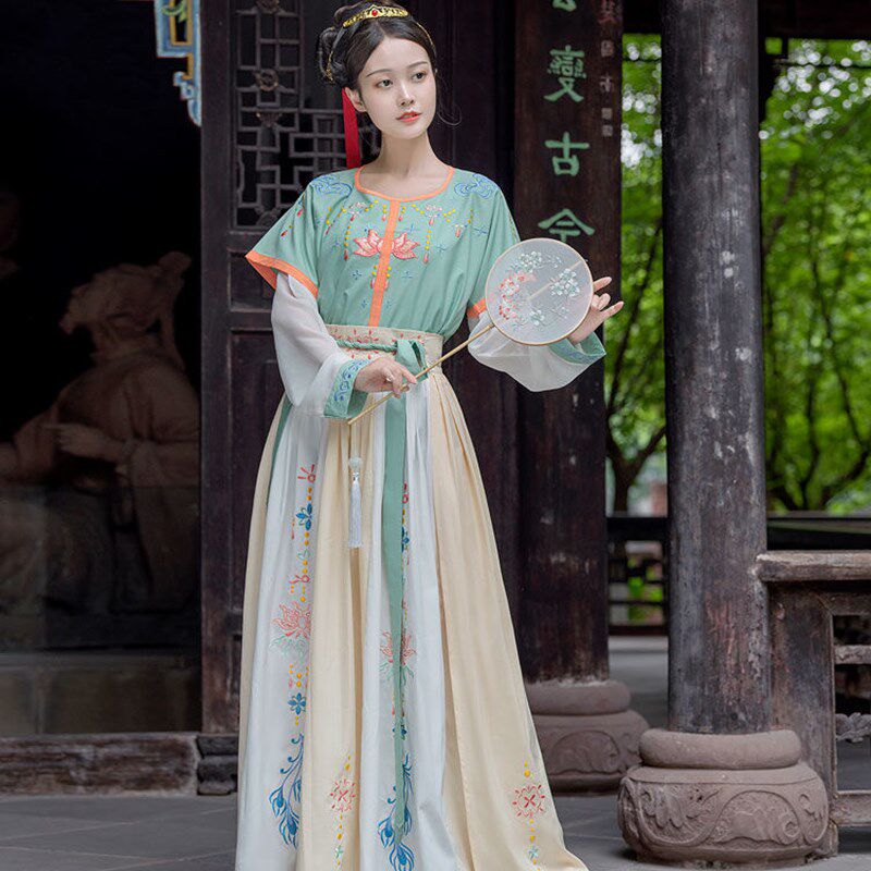Dunhuang Wind (Lacquered) Handmaid Women Tan Collar One-piece Waist Jacket with three sets of Flying Sky cabbage Set of ancient clothes