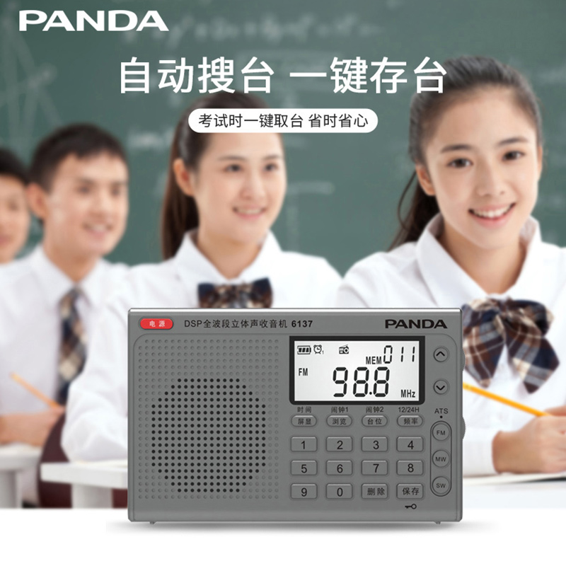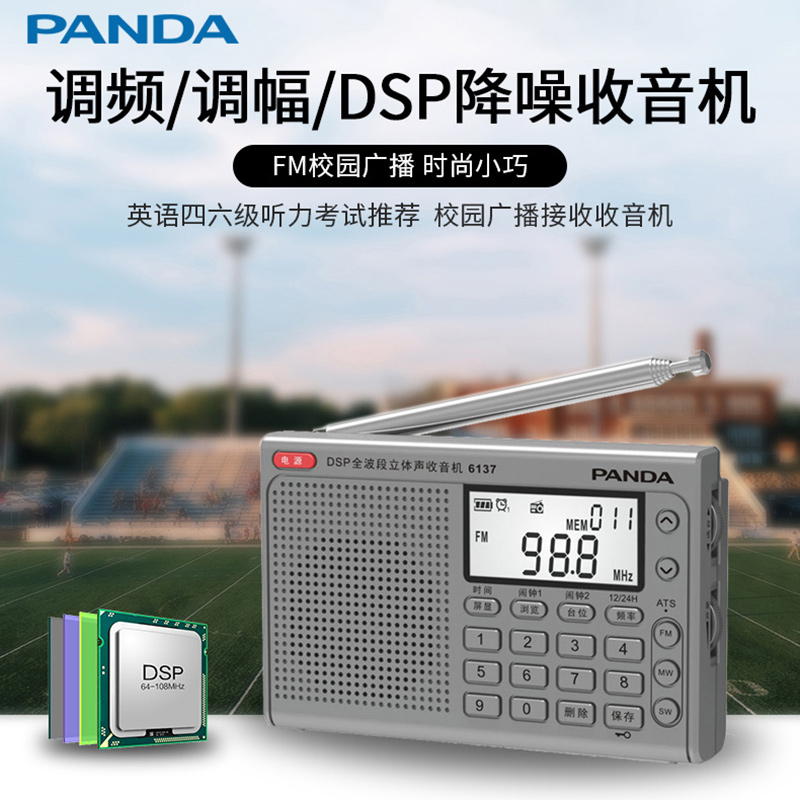 Panda exam radio Level 46 English listening test Shanghai students use noise-canceling FM radio DSP lithium battery charging for the elderly full-band FM semiconductor 6137 campus radio