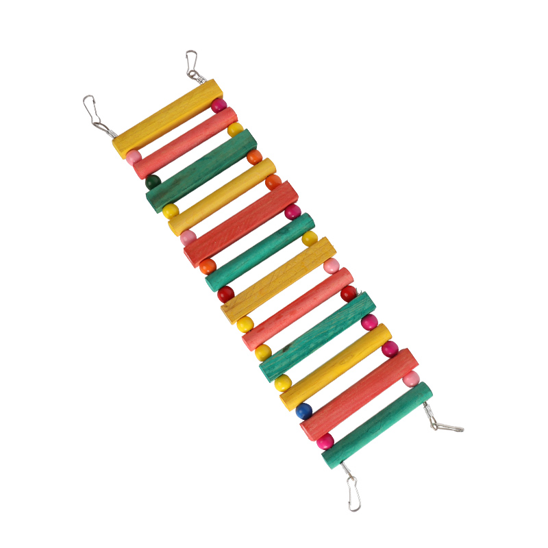 The colorful suspension bridge climbing up the ladder.