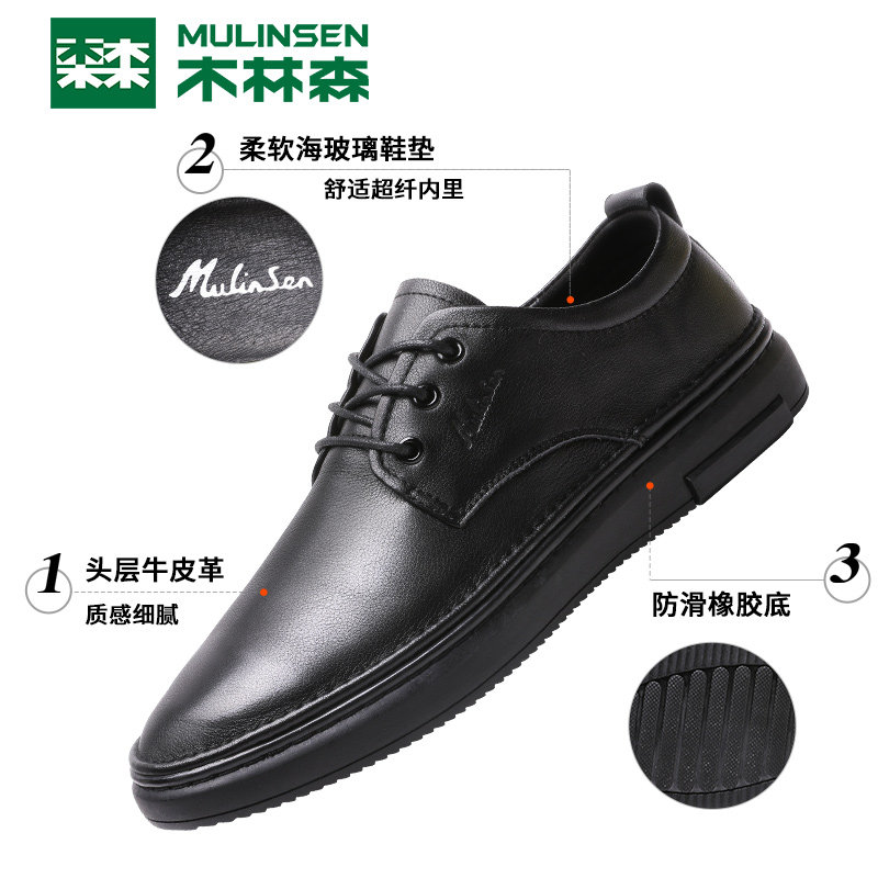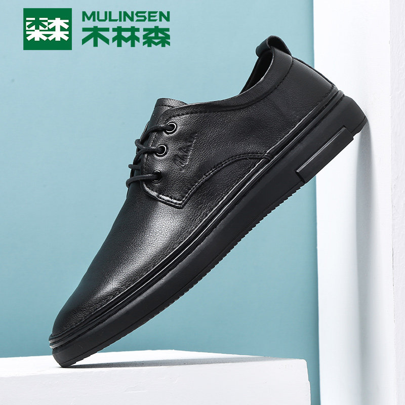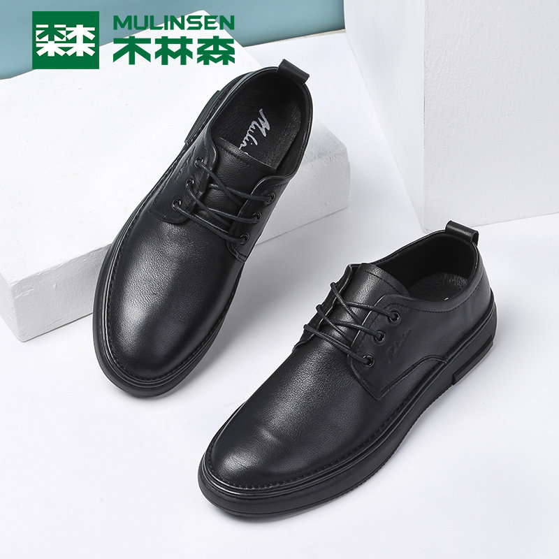 Wood Linson Men Shoes Business Casual Leather Shoes Summer New Men Genuine Leather Breathable Flat Bottom 100 lap Inn Dad shoes