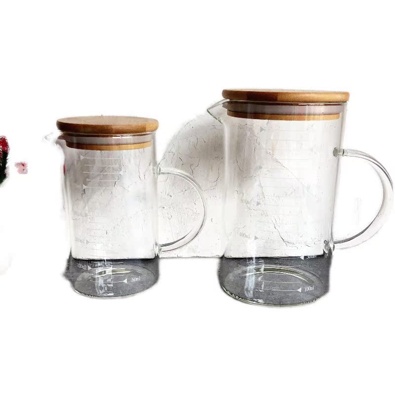 INS Nordic simple bamboo cover heat-resistant glass milk cup water cup with lid tea cup scale measuring cup tableware