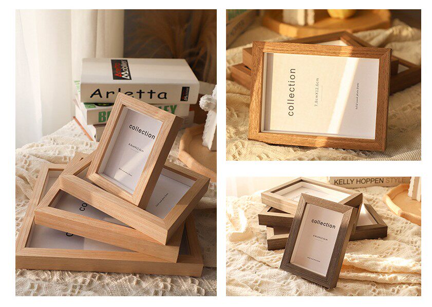 6 inch photo frame Japanese simple solid wood photo frame set table plus rinse printing photo frame photo frame photo frame three-dimensional thick frame
