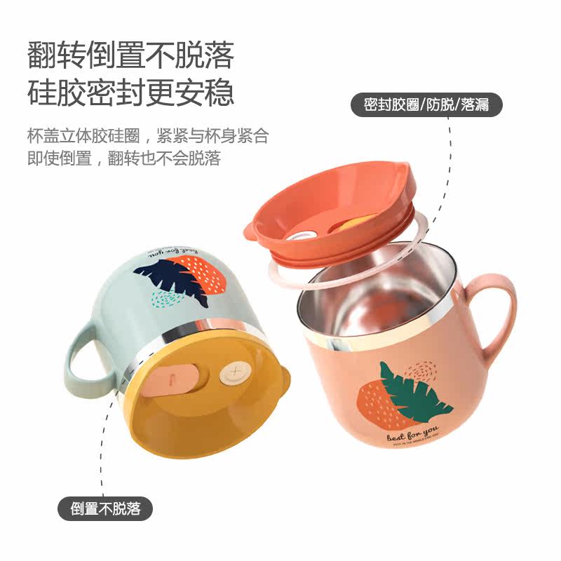 Baby straw cup straight Drink cup Drink cup stainless steel anti-fall with straw