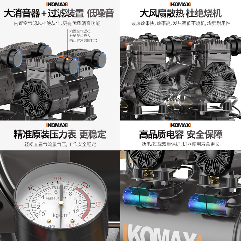 Oil-free silent air compressor 220v small air pump industrial grade high pressure air compressor portable woodworking pump