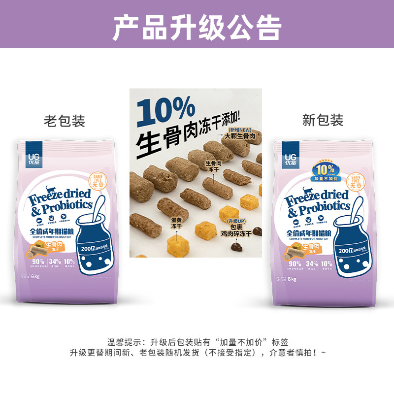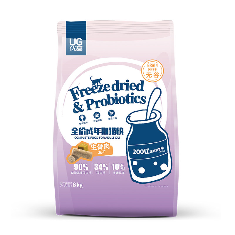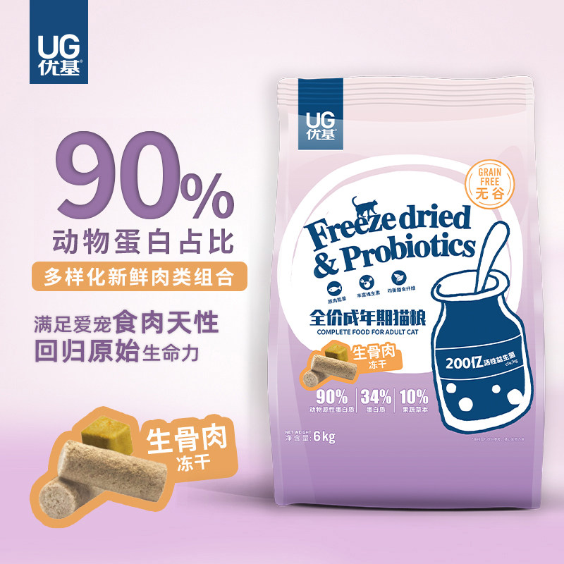 UG raw bone, meat, egg yolk, freeze-dried cat food for adult cats, British short ragdoll cats, universal grain-free probiotic food 6kg