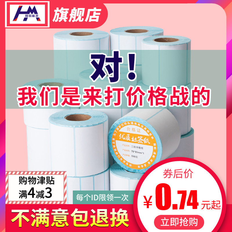 Constant code three anti-thermal label paper 100x100 90 80 70 60 50 40*30 self-adhesive barcode printer electronic scale called Post station supermarket waterproof small roll price sticker